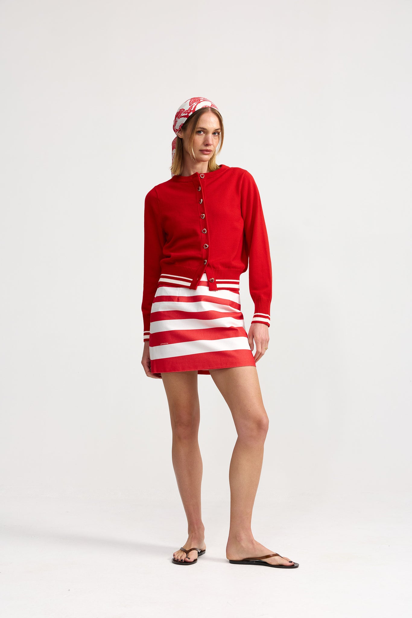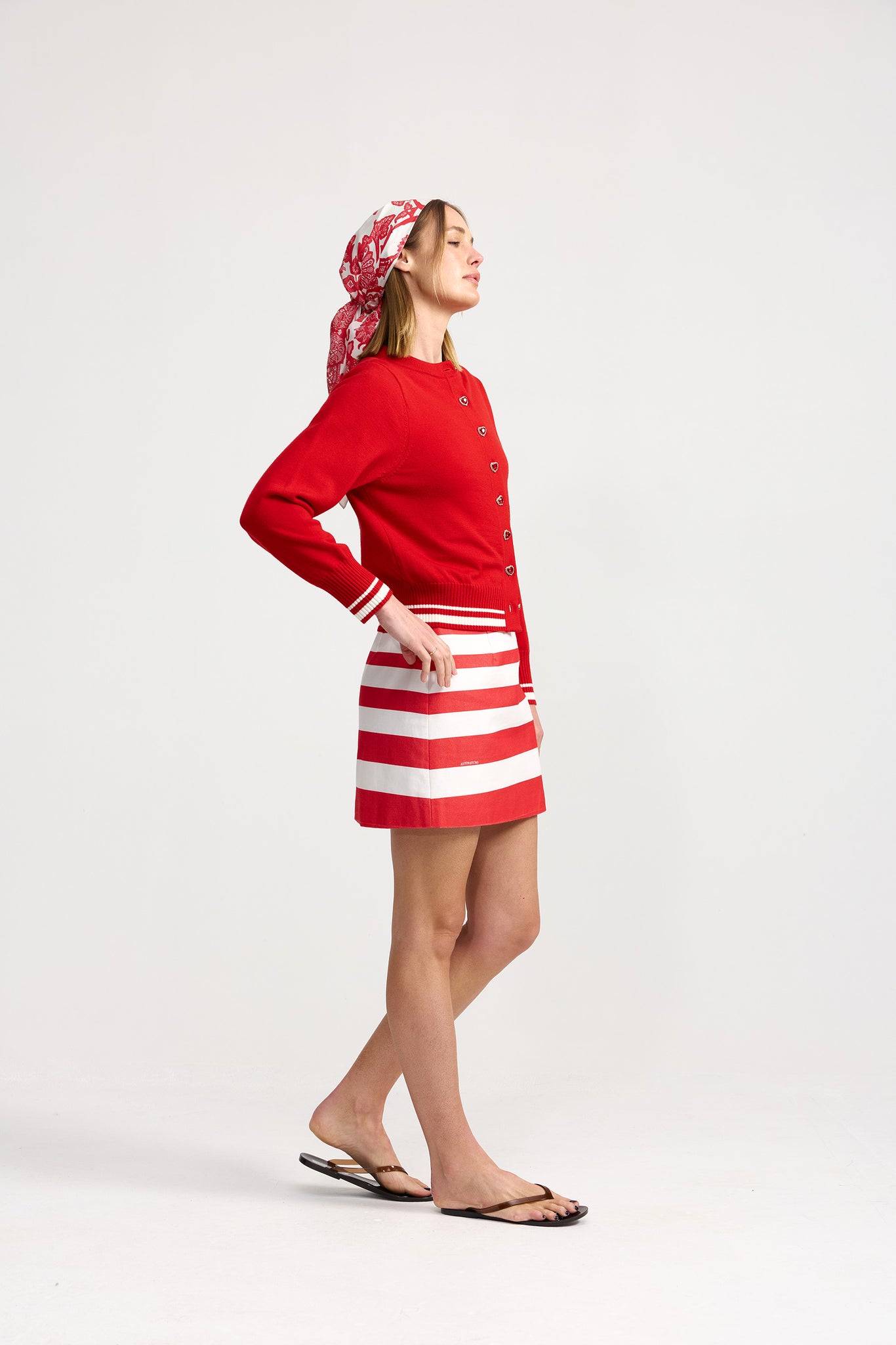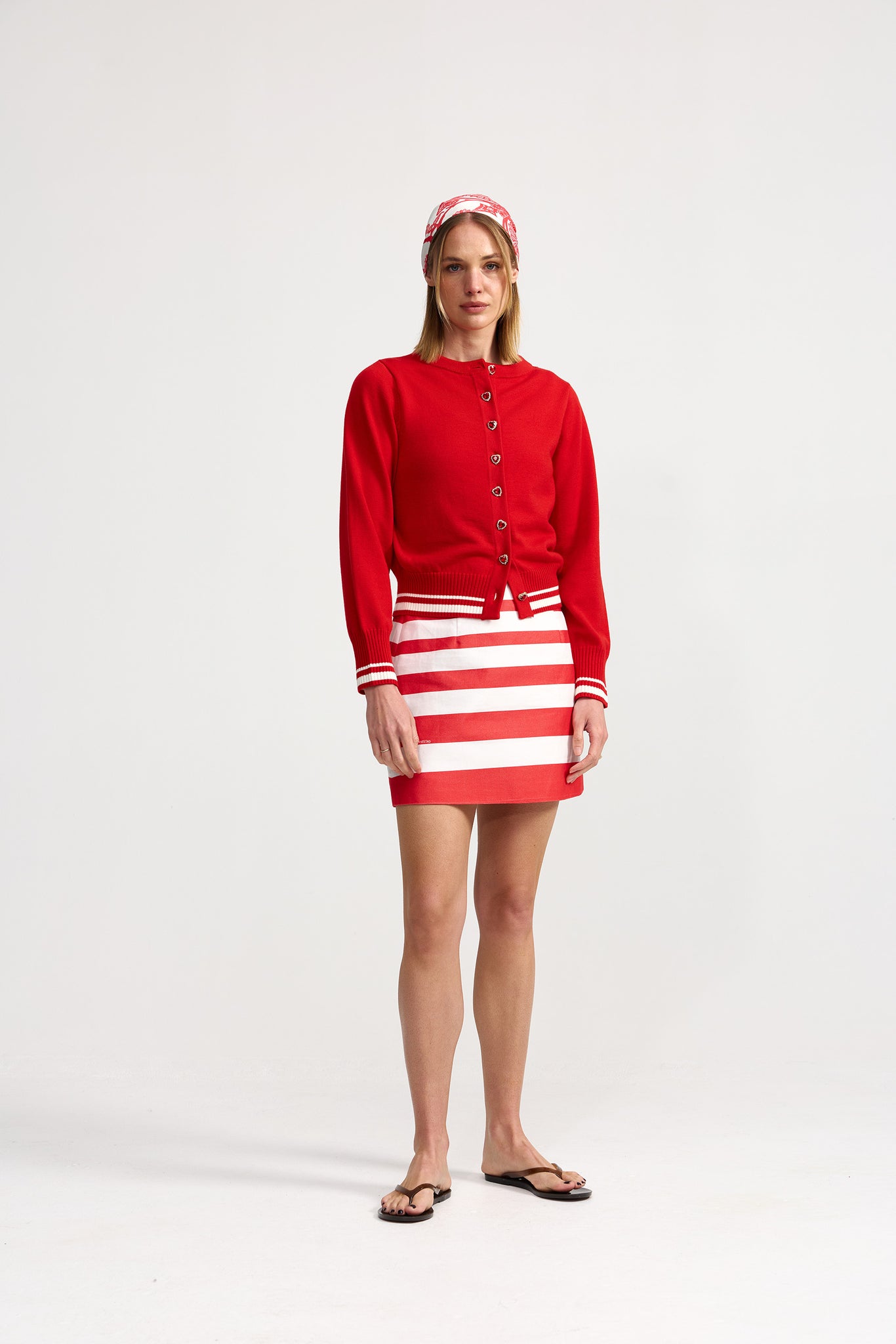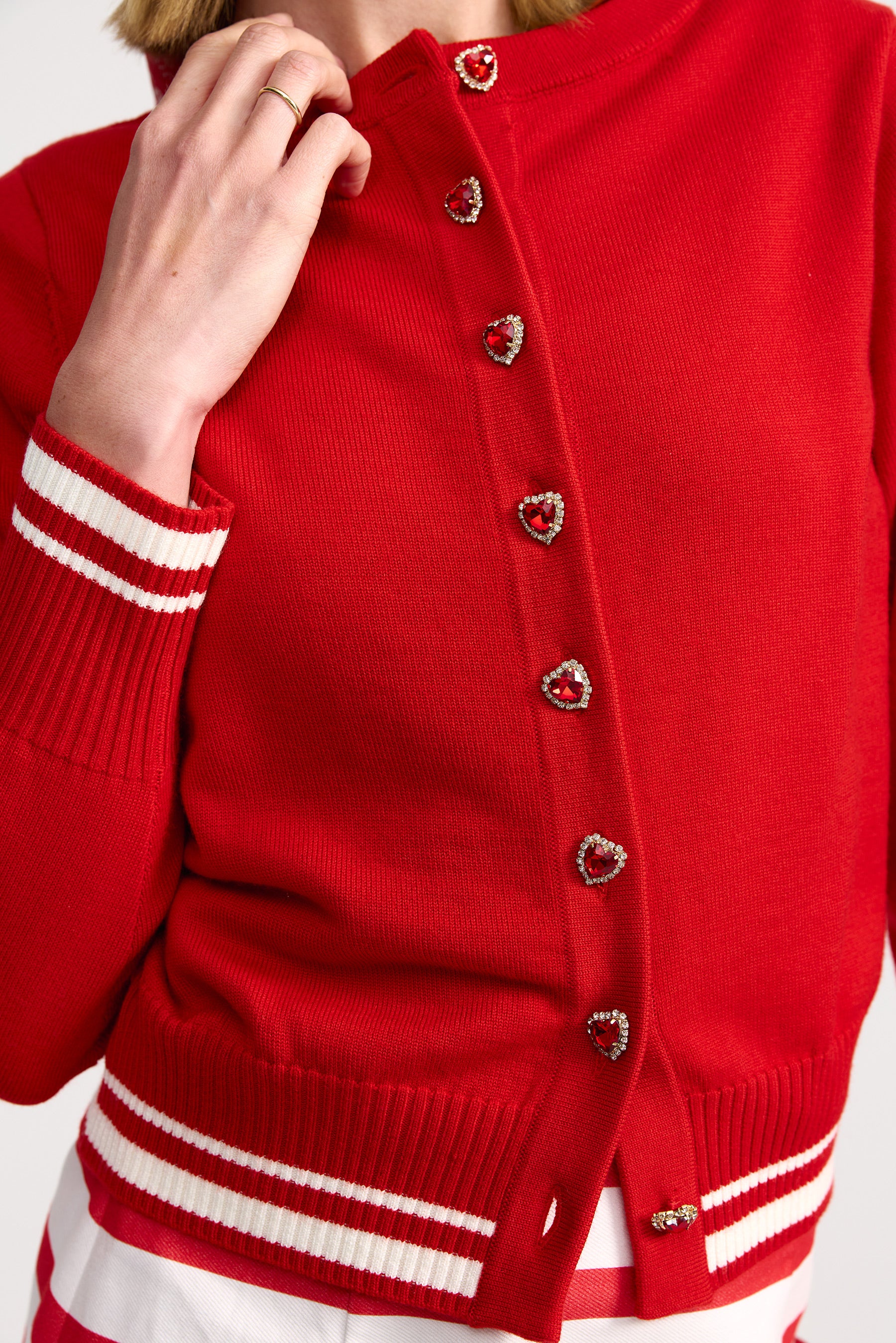 Wrap yourself in effortless style with the Lenora Cardi Ruby Antique. Defined by statement diamante heart-embellished buttons and stripe details, this is the perfect cardi for layering over dresses or tailored separates.