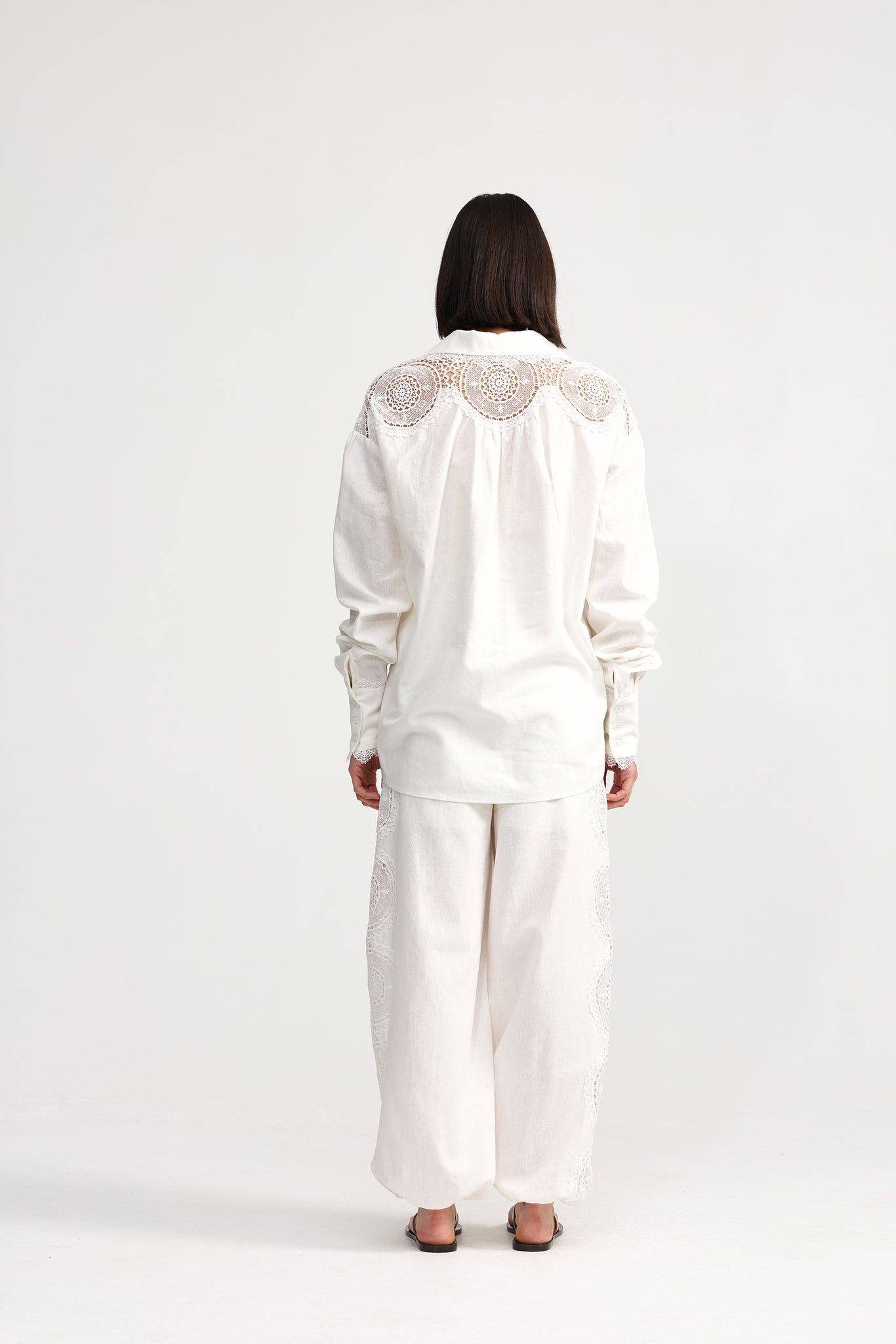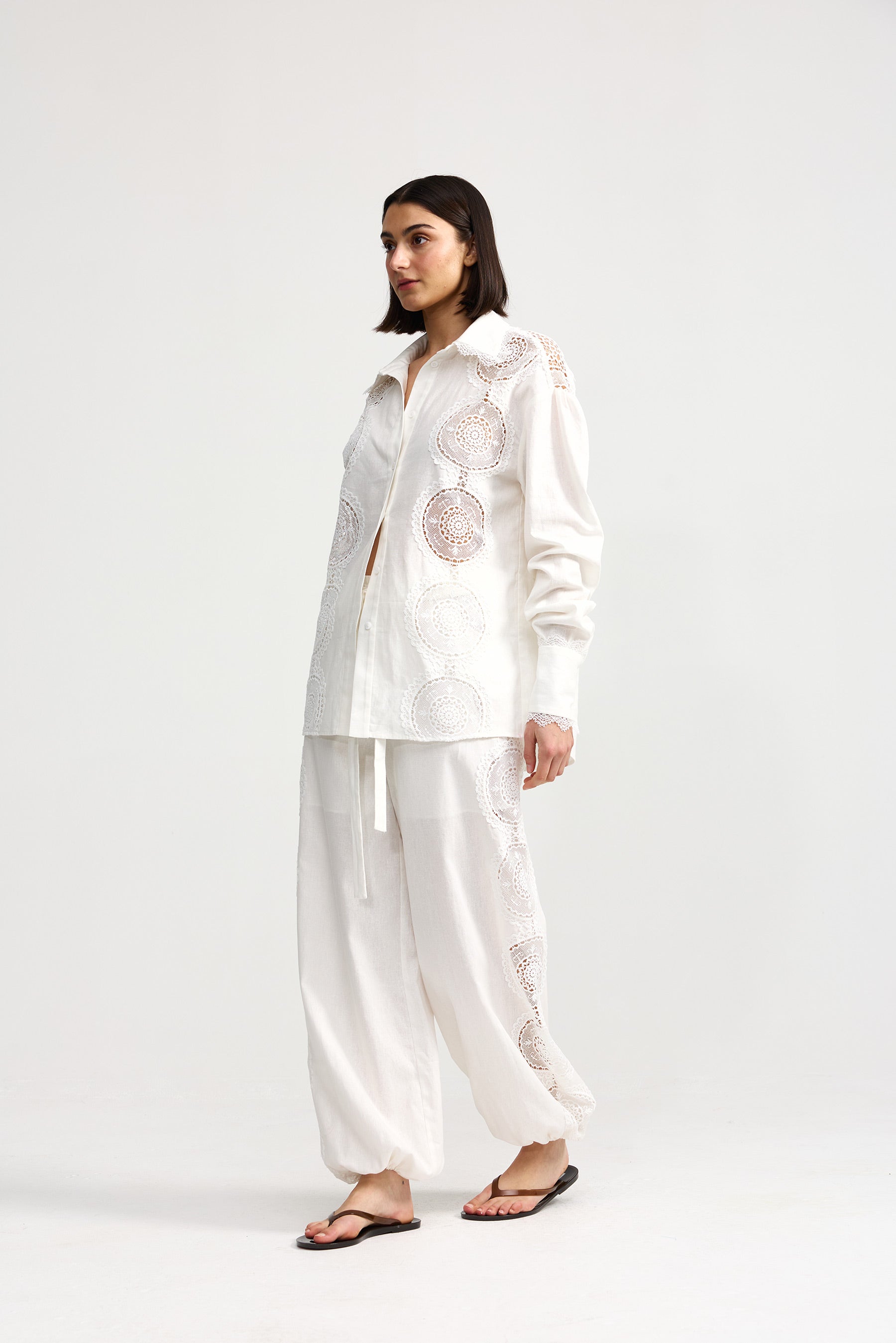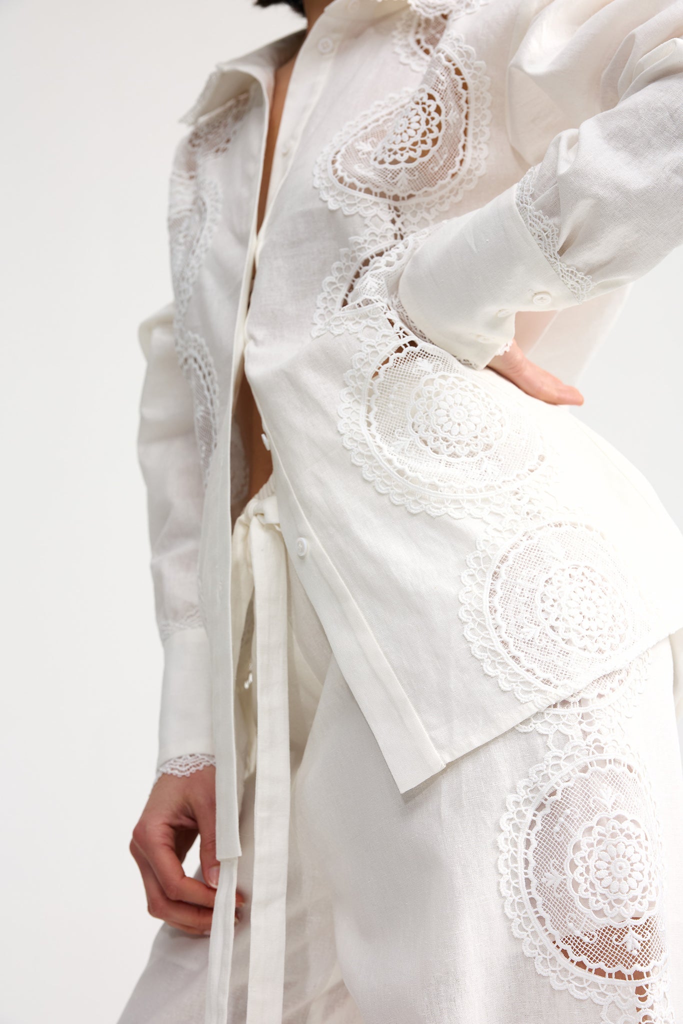 A modern take on embroidery, the Winona Shirt Antique is designed with an effortless, relaxed fit and elevated textural detail. Unlined for a lightweight, breathable feel, it’s designed to be worn with the matching crochet pant or styled as a statement piece.