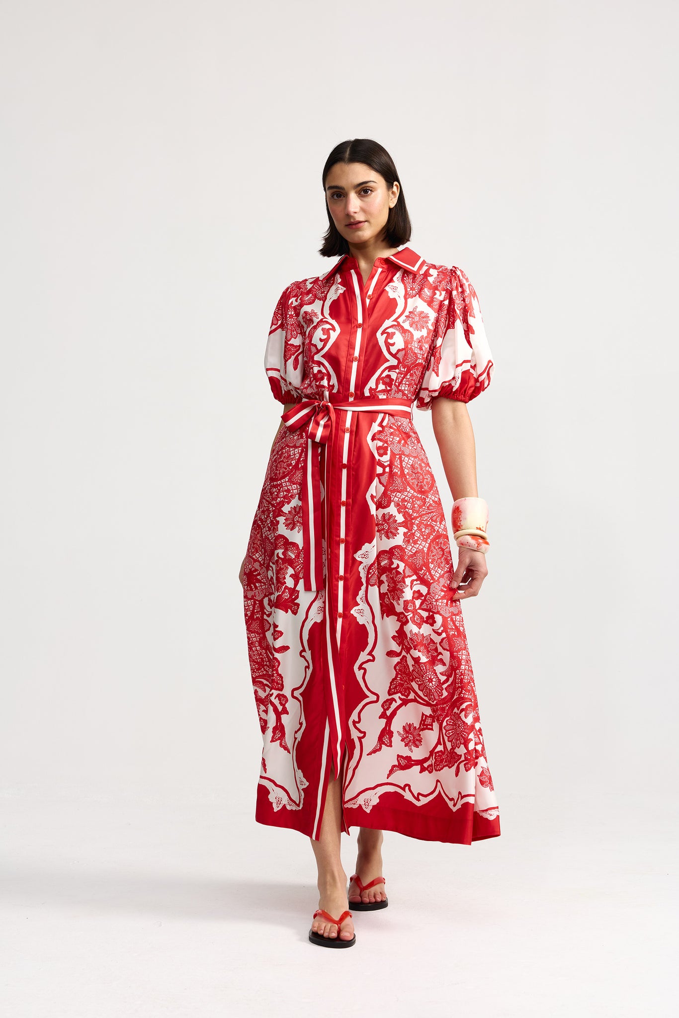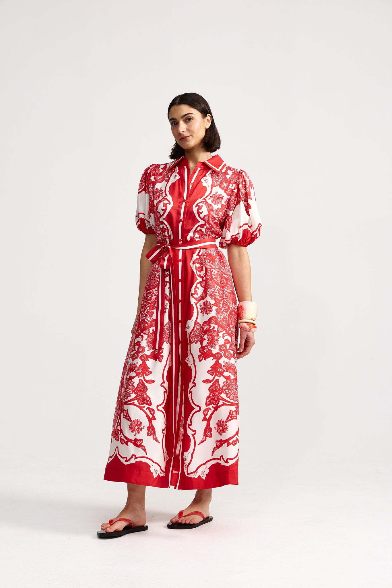 The Marley Dress Ruby Antique exudes effortless elegance with a flowing silhouette, charming short puff sleeve, and button-down front. Crafted in our signature Ruby Antique print, this timeless design combines delicate femininity with versatile sophistication, making it the perfect choice for both casual and refined occasions.