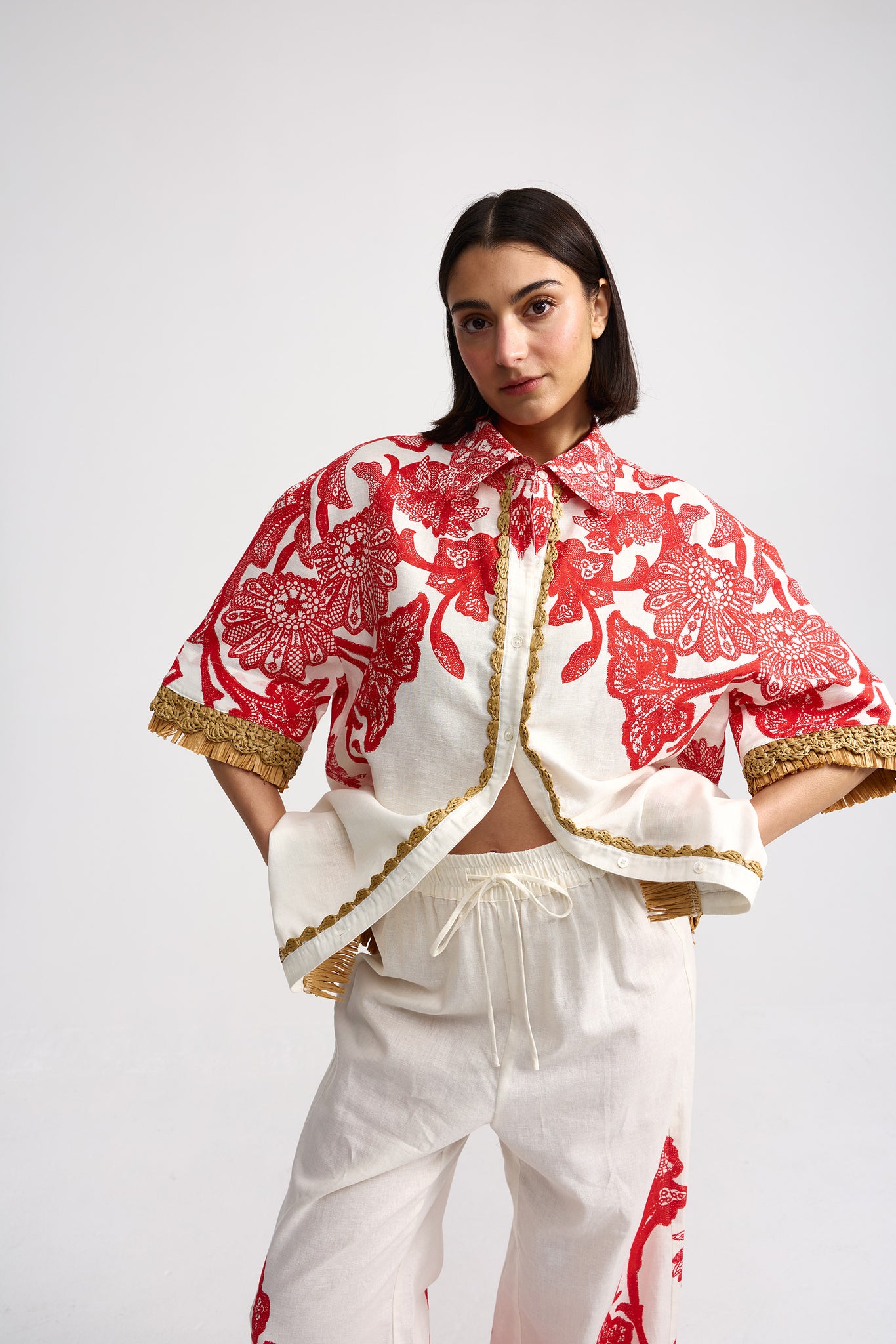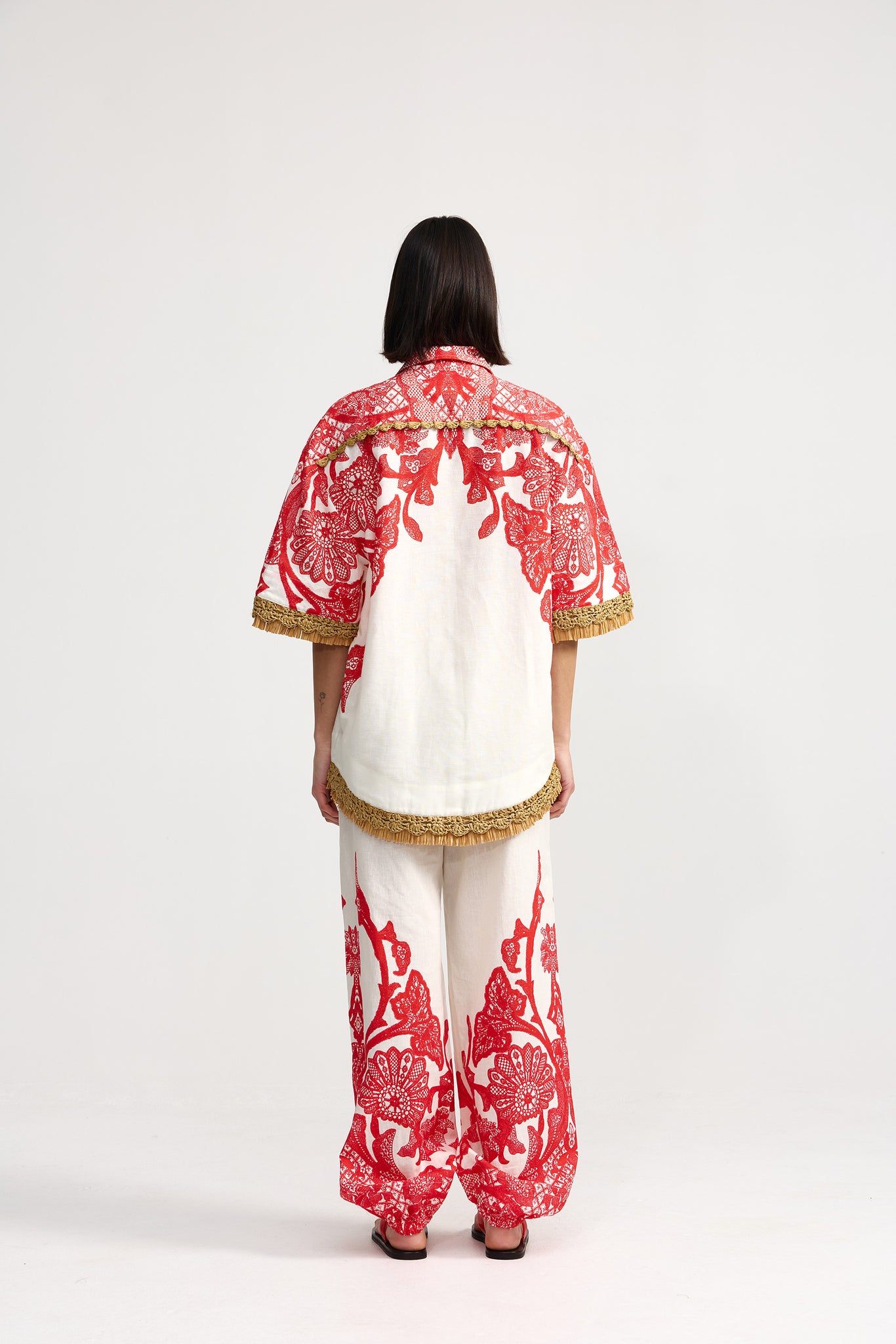 The Moana Pant in Ruby Antique elevates everyday dressing with effortless style. Designed with a high-rise waist and a wide-leg silhouette with a balloon hem, these pants combine comfort with style. Lightweight and breathable, they pair perfectly with the matching Remy Shirt for a coordinated look, or stand out on their own as a statement piece.